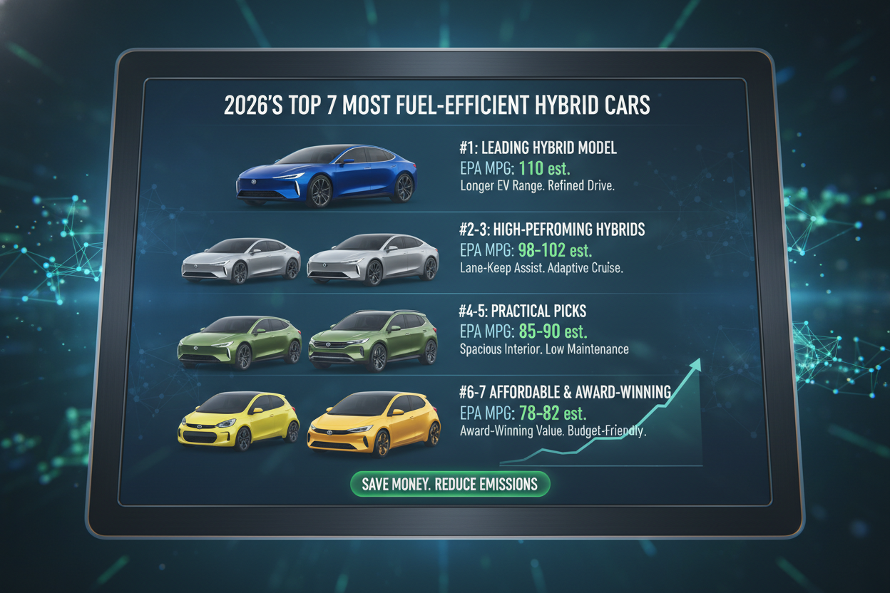 Looking for the most fuel-efficient hybrid cars in 2026? Discover our comprehensive guide to the top 7 hybrids with the highest EPA MPG ratings. Learn about their standout features, performance, and how these vehicles can help you save money at the pump.